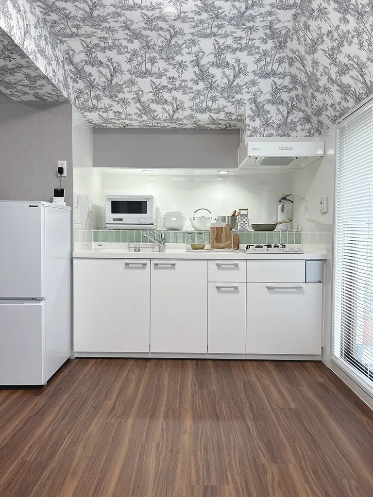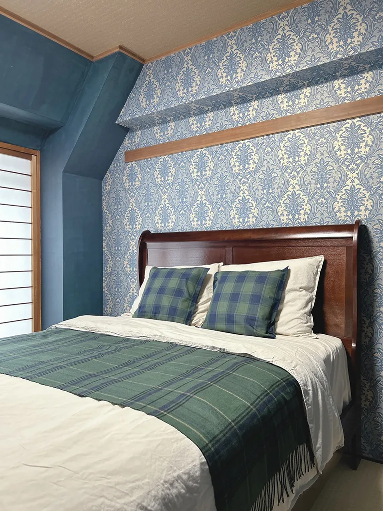 大胆なクロスや色使いで、賃貸の域を超えたこだわりのインテリアとなっています。