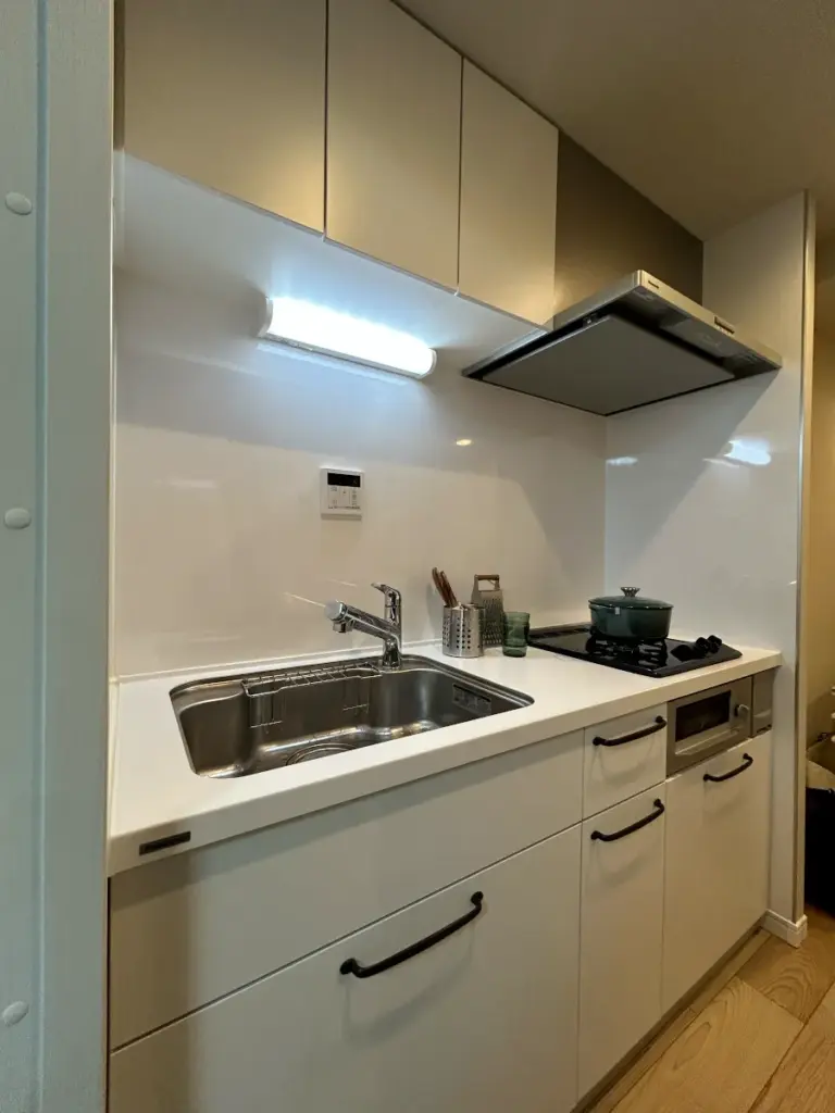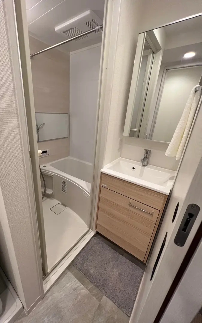 ワンルームでありながらも、バスルーム、洗面台、トイレ、洗濯エリア、収納などが分かれていて、