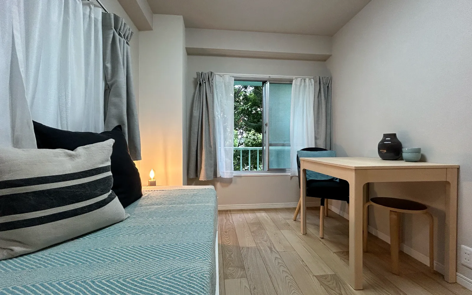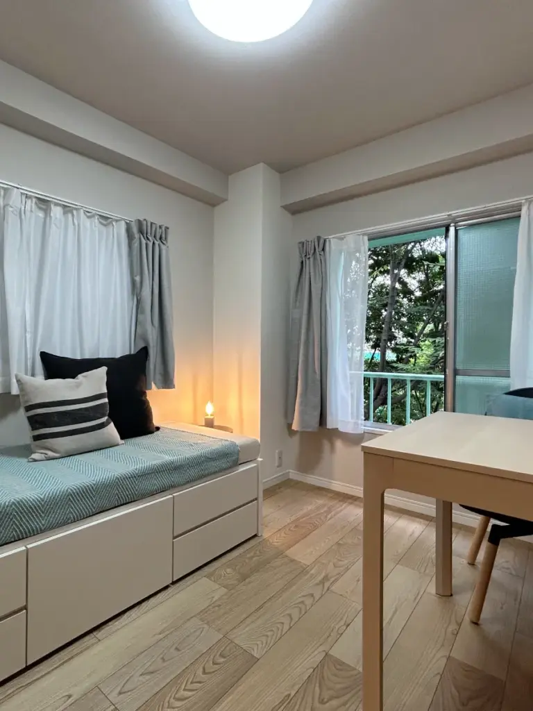 環七通り沿いにありながらも新緑を感じる一室。