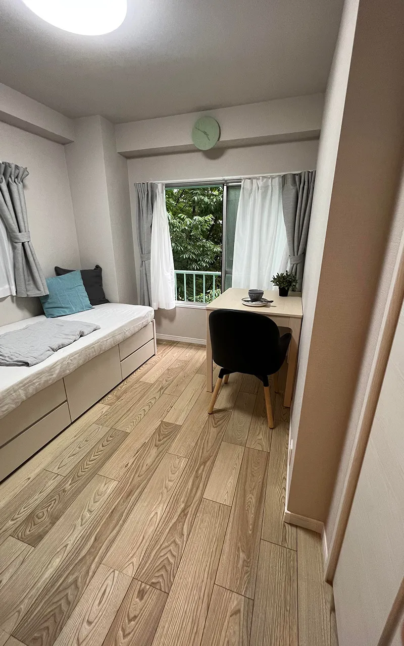 環七通り沿いにありながらも新緑を感じる一室。