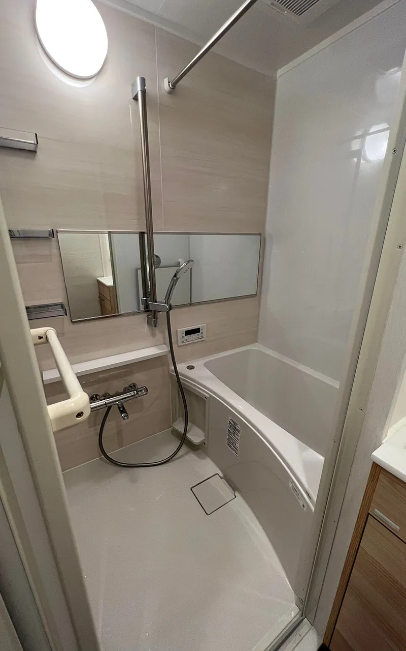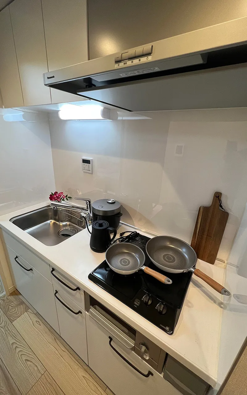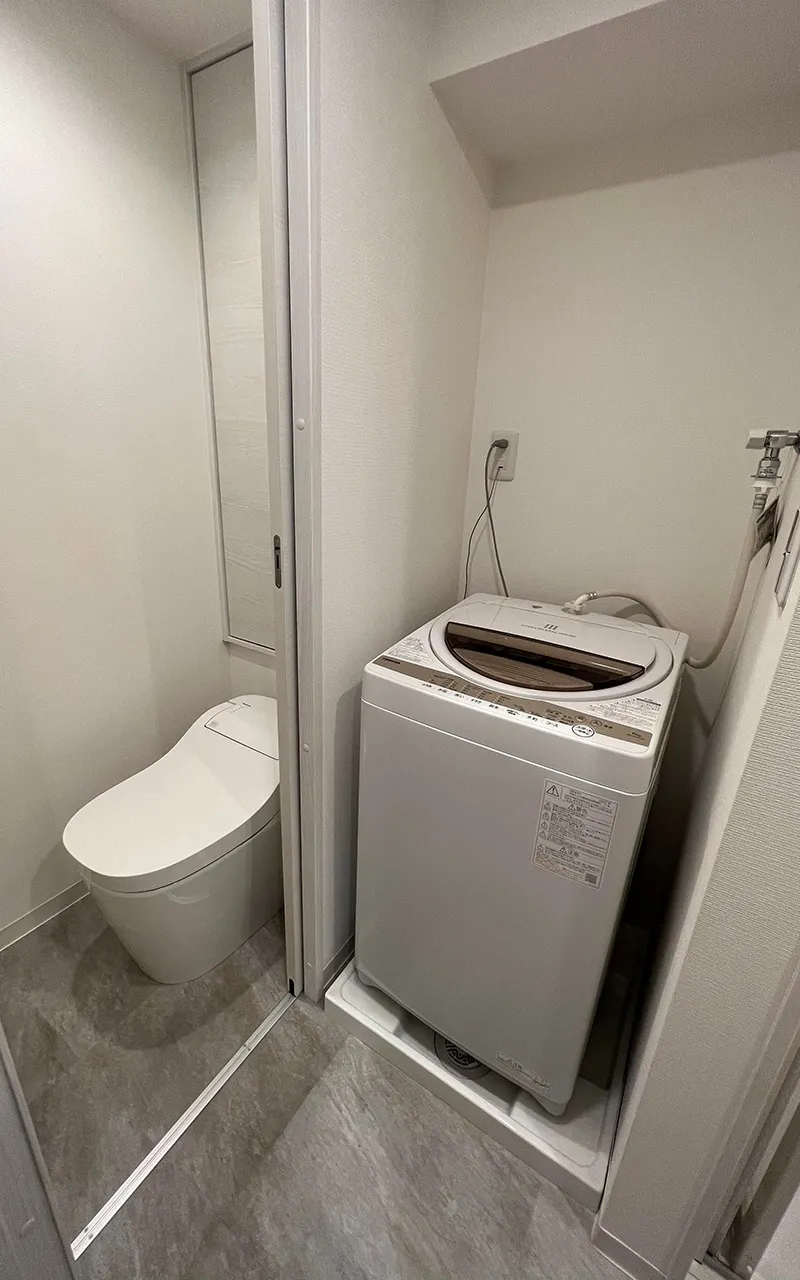 ワンルームでありながらも、バスルーム、洗面台、トイレ、洗濯エリア、収納などが分かれていて、